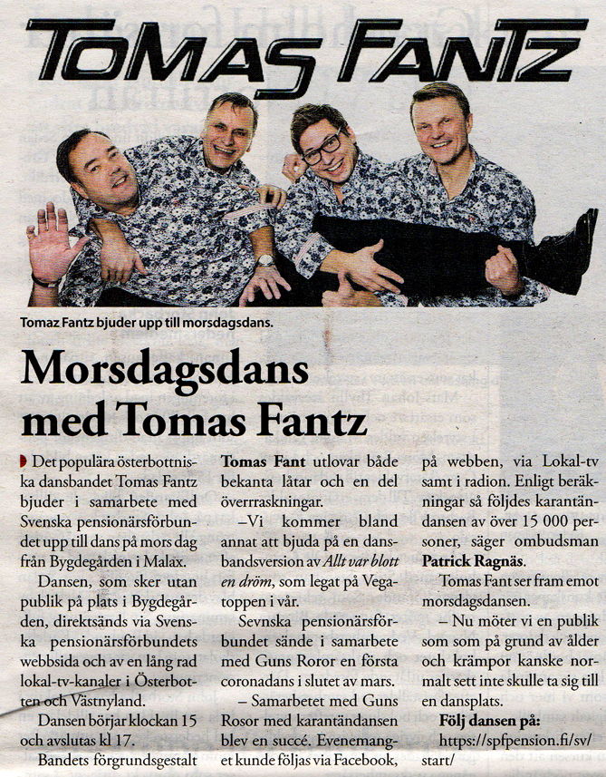 Dansen som sker utan publik på Bygdegården i Malax, direktsänds via Svenska pensionärsförbundets webbsida och av en lång rad lokal-tv-kanaler i Österbotten och Västnyland. Dansen börjar kl. 15 och avslutas kl. 17. Följ med på